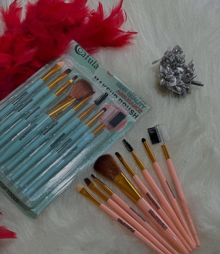 Cafula marka pastel pembe makyaj fırçaları, farklı boyut ve şekillerde yumuşak kıllara sahiptir. Altın renk detaylarla tamamlanmıştır. ️