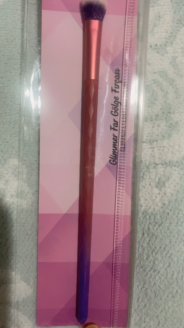 Pastel pembe tonlarında, yumuşak kıllı ve degrade saplı makyaj fırçası, göz farı uygulamak için kullanılır.