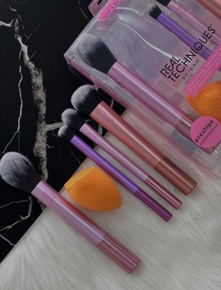Yumuşak kıllara ve ergonomik saplara sahip pastel pembe makyaj fırçası seti, turuncu karıştırma süngeri ile birlikte gelir. Pürüzsüz uygulama sağlar.