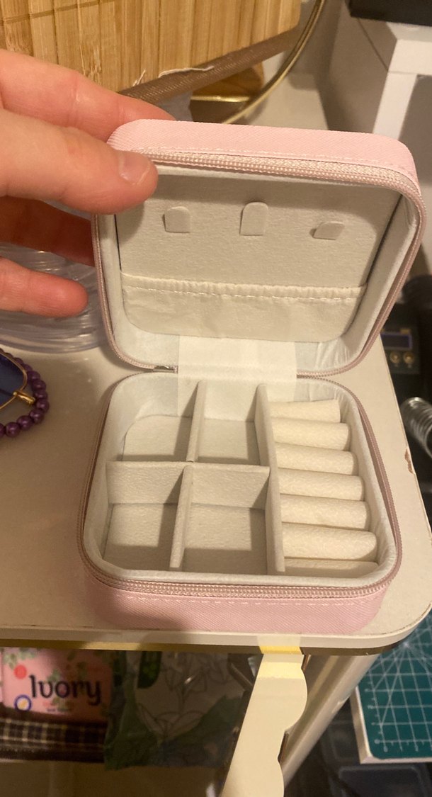 Pastel pembe makyaj organizer kutusu, kolay saklama için çoklu bölmeler ve yüzük tutucular içerir. Yumuşak iç yüzeyi ürünlerinizi korur ve düzenli tutar.