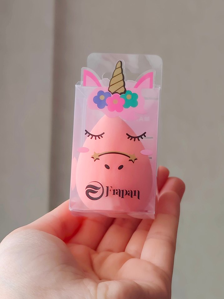 Pastel pembe renkte, yumuşak dokulu ve çiçek detaylı sevimli bir unicorn tasarıma sahip makyaj süngeri. Üzerinde 'SFrapan' markası bulunur. Normalde makyajımı yıllardır parmağımla yaparım yayarak. Sünger ile denemek istedim ama alışkanlık haline geldiği için süngere hiç alışamadım. 1-2 kez kullandım.