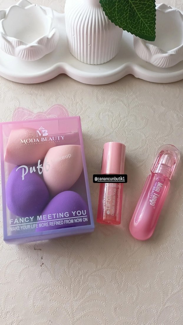 Moda Beauty markasına ait pastel pembe tonlarında iki makyaj süngerinden oluşan set, pürüzsüz uygulama sağlar. hepsinin fiyatıdır sünger set simli dudak parlatıcı dudak bakım yağı