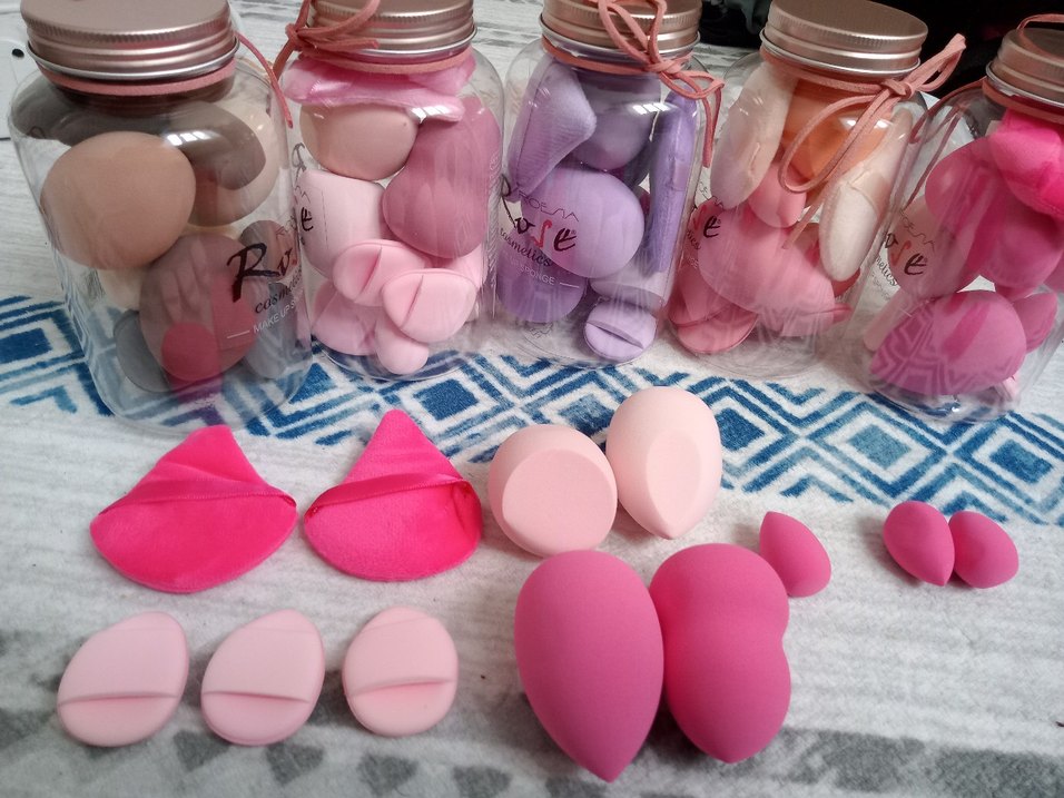 Pastel pembe renkte, farklı şekillerde makyaj süngerleri içeren set. Yumuşak dokusu ile pürüzsüz uygulama sağlar.
