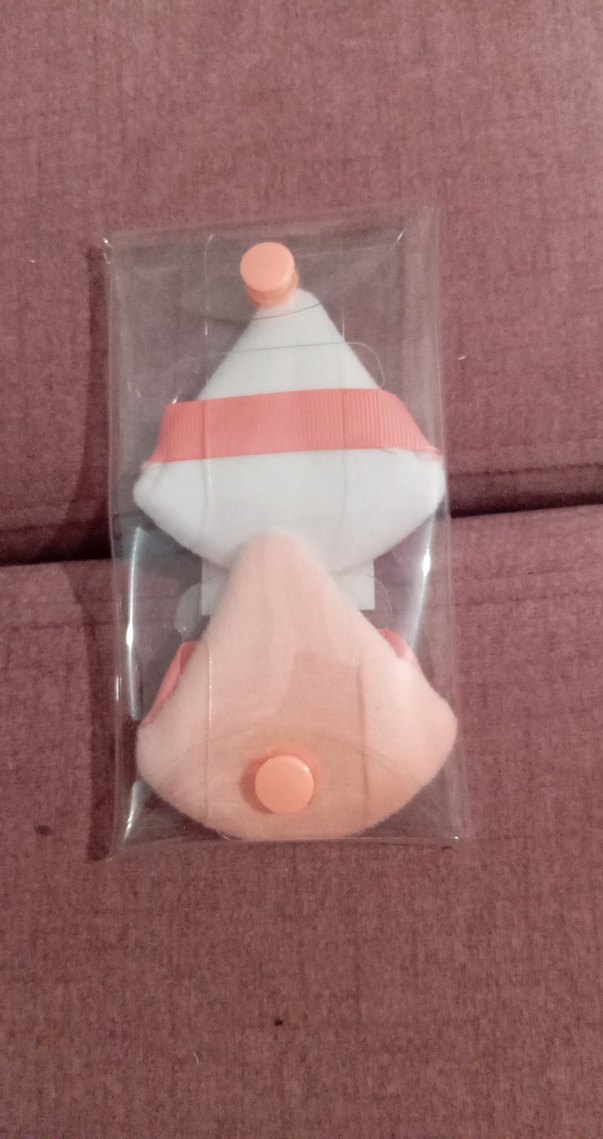 Yumuşak dokulu pastel pembe makyaj süngerleri, kolay kullanım için elastik bantlıdır. Düğmeli kompakt pakette sunulur.