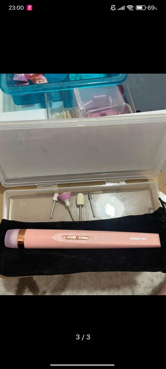 Pastel pembe renkte, dört farklı başlığa sahip manikür ve pedikür seti. Koruyucu kutu ve siyah kılıf ile birlikte gelir.