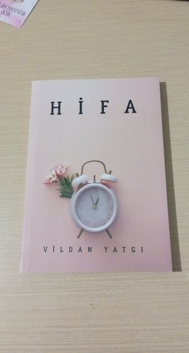 Kapağında masa saati tasarımı ve çiçek süslemeleri bulunan pastel pembe defter, üzerinde "HIFA" ve "VILDAN YATGI" yazıyor. ⏰