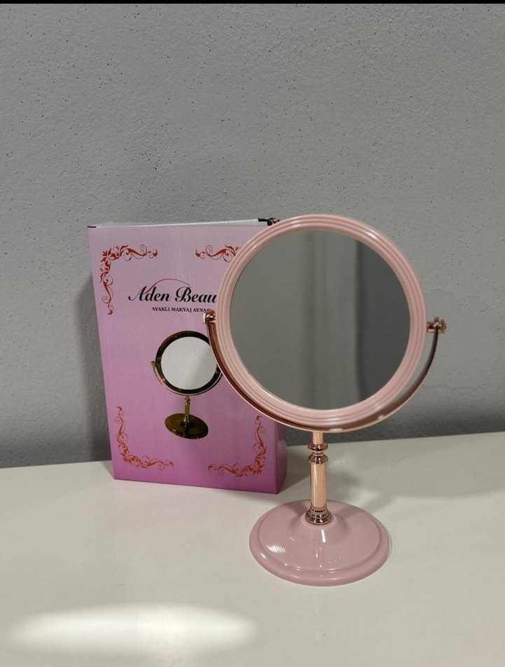 Pastel pembe renkte, ayarlanabilir eğimli yuvarlak yüzeyli masaüstü makyaj aynasıdır. Dayanıklı tabanı ve yumuşak renkli çerçevesi ile şık bir görünüme sahiptir.