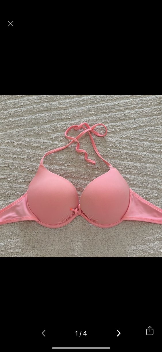 Pastel pembe renkte, desen içermeyen minimalist bikini üstü. Normal uzunlukta, boyun bağlamalı ve önünde küçük bir fiyonk detayı bulunur. zara bikini mango bikini bershka bikini stradivarius bikini h&m bikini yeni sezon bikini yaz 2025 plaj modası trend mayo çizgili bikini üçgen bikini yüksek bel bikini askılı mayo desteksiz bikini cup bikini havuz için ideal deniz kıyafeti tatil bavul