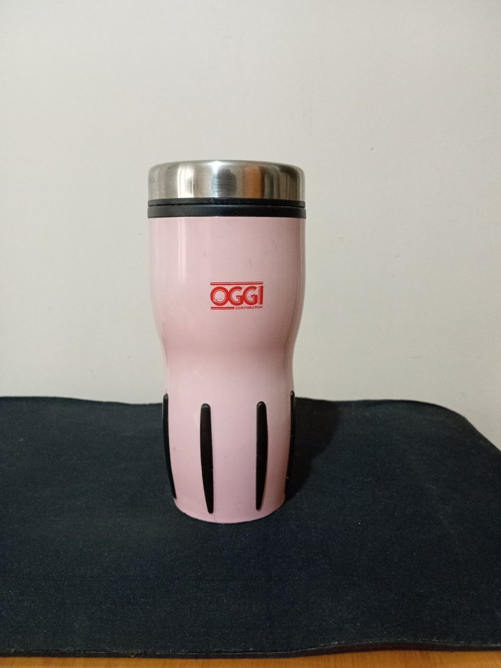 Pastel pembe renkte OGGI markalı çocuk termosu, içecekleri sıcak tutar. Paslanmaz kapak ve kolay tutuş sağlar. bir kusuru defosu yoktur göründüpü gibidir