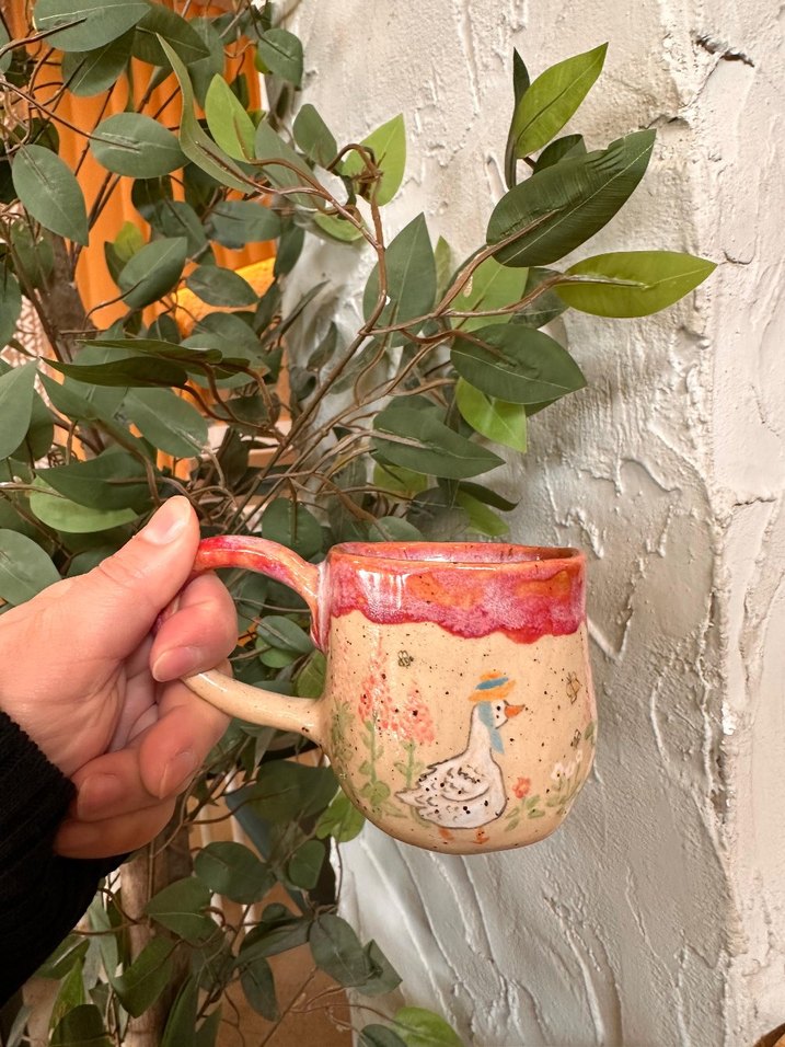 Pastel pembe renkte, üzerine ördek figürü işlenmiş seramik kupa, parlak kenarıyla dikkat çekiyor. ☕ Ürün stoneware çamurundan üretilmiştir gıdaya uygundur 125 ml almadan önce mevcut olup olmadığını sorun