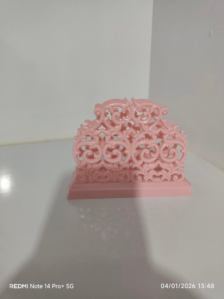 Pastel pembe renkte, detaylı dekoratif desenlere sahip peçetelik.
