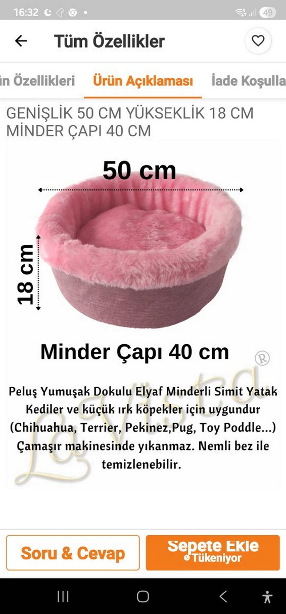 Pastel pembe renkte, yumuşak ve peluş kedi yatağıdır. Yuvarlak şekli ve kabarık dokusuyla kedinize rahat ve sıcak bir alan sunar. kız kedi sandık erkek çıktı başka rengini aldık kız kediler için sıfır kullanılmadı trendyolda 1700 tl şu an