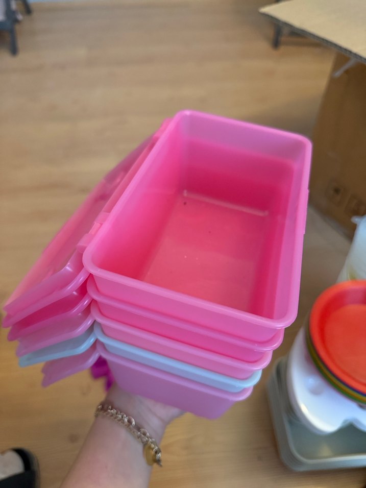 Pastel pembe plastik saklama kapları, mutfakta kullanıma uygun, kolayca üst üste konabilir ve çeşitli eşyalar için idealdir. Ikea marka Tek adet fiyatdır