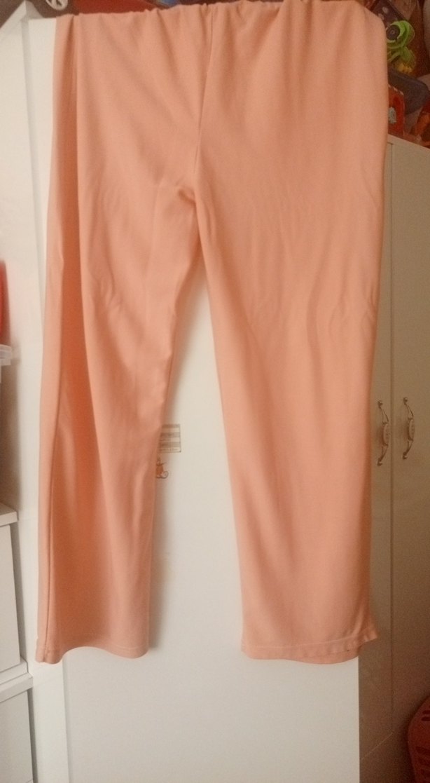 Yumuşak sentetik kumaştan, uzun ve rahat kesim pastel pembe kadın pantolonu, gündelik kullanıma uygun, zahmetsiz şıklık sunar.