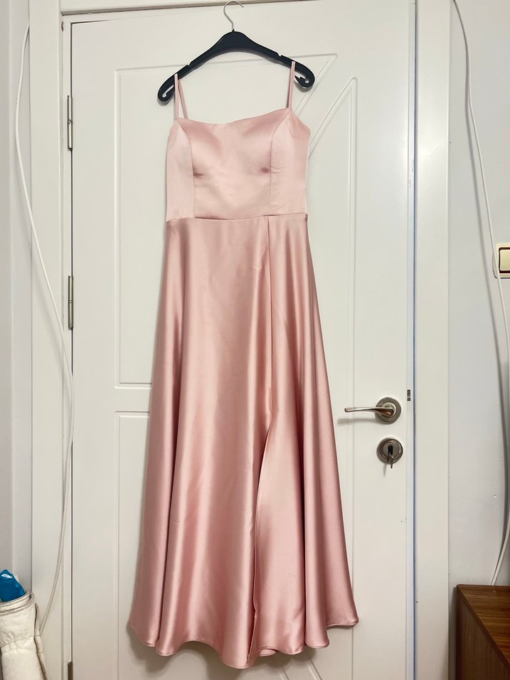 saten askılı nişan veya düğün elbisesi