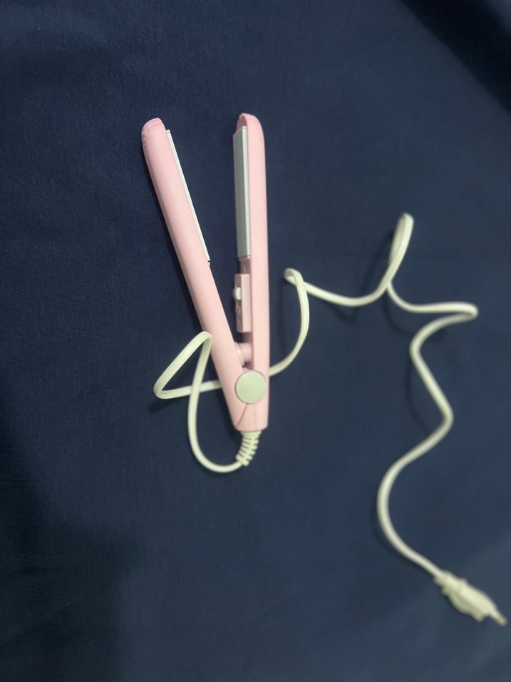 Pastel pembe renkte, pürüzsüz plakalı ve kompakt tasarımlı saç düzleştiricidir. Kullanımı kolay güç kablosu mevcuttur. ♀️
