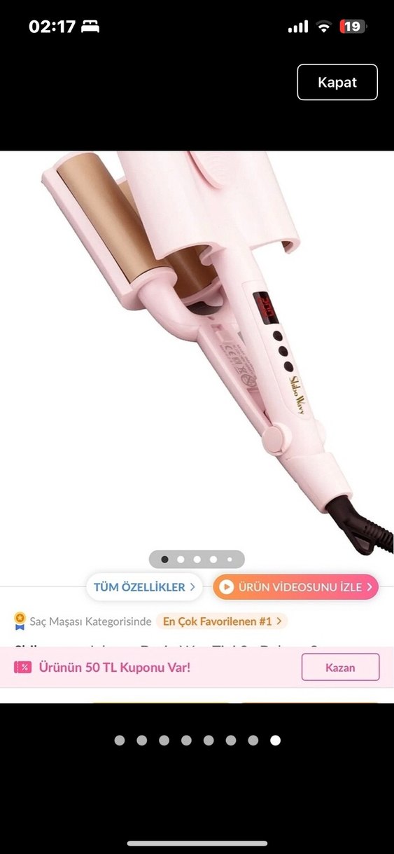 Pastel pembe saç maşası, dijital ekran ve ergonomik tasarıma sahiptir. Kutusu mevcut değildir