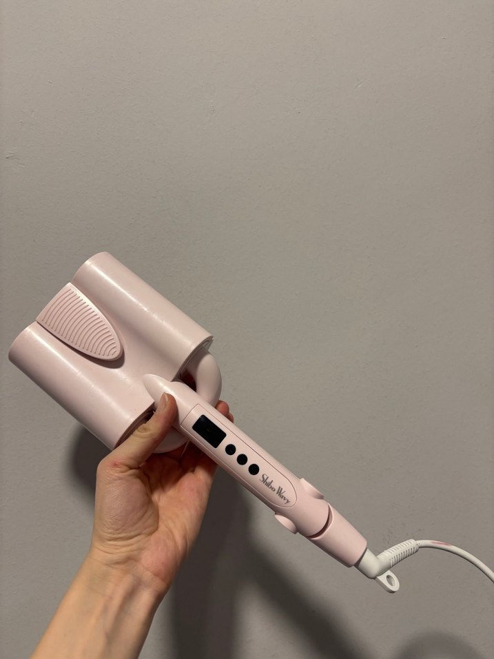 Pastel pembe saç şekillendirici, dijital ekran ve kolay sıcaklık kontrolü için düğmeler içerir. Konforlu kullanım için ergonomik tasarıma sahiptir. ♀️