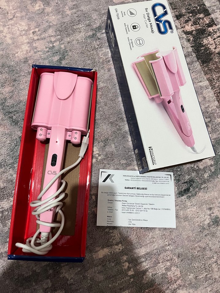 Pastel pembe saç şekillendirici, üç varilli dalga yapma aparatı ve ayarlanabilir ısı ayarına sahiptir. Yumuşak tutma sapı ve garanti belgesi ile birlikte gelir. ♀️