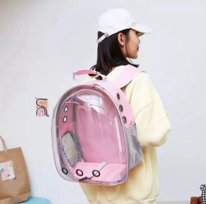 Pastel Pembe Şeffaf Kedi Taşıma Sırt Çantası