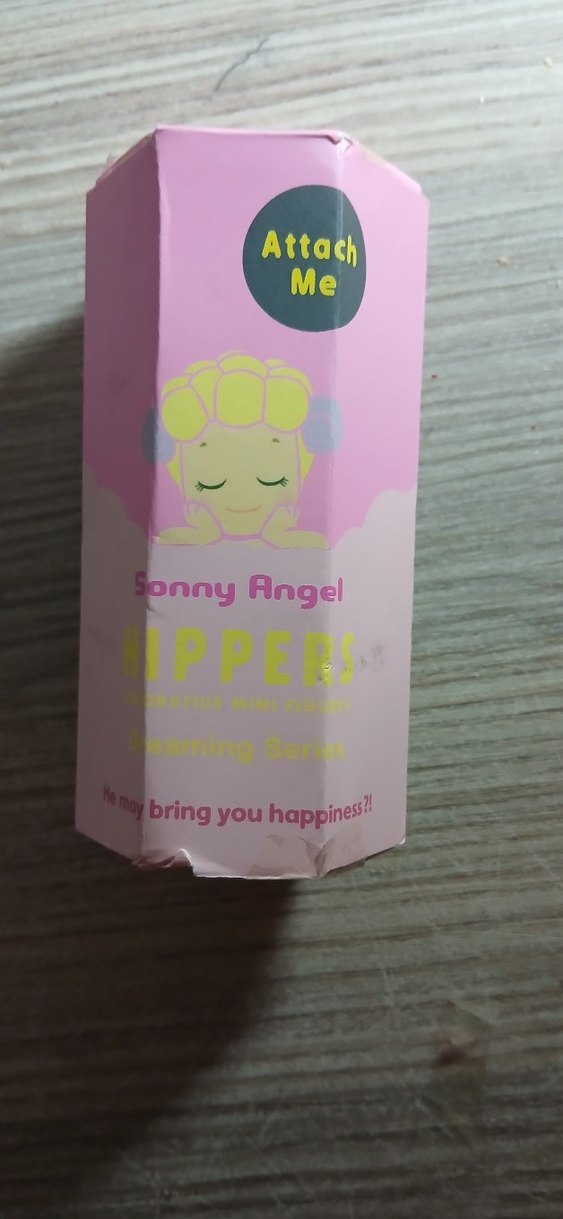Pastel pembe renkte Sonny Angel figürü, 'Attach Me' yazılı paketiyle birlikte gelir. Sevimli tasarımıyla mutluluk getirir.