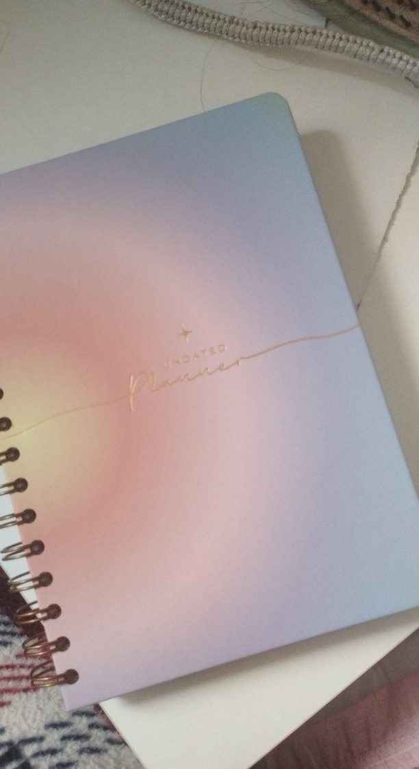 Pastel pembe renkli, altın yaldızlı yazılı spiralli not defteri. Yumuşak kapak ve hafif degrade renk geçişi bulunur. Yazmak ve not almak için uygundur.