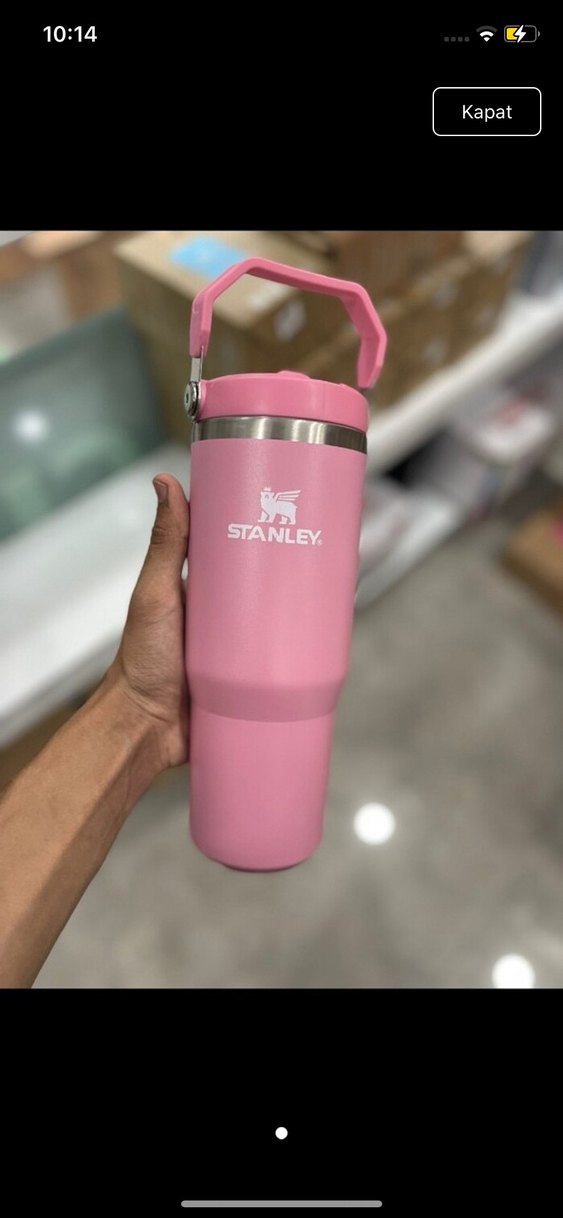Pastel pembe renkte, dayanıklı kulplu ve güvenli kapaklı Stanley termosu. İçecekleri sıcak tutar. Renkler mevcuttur