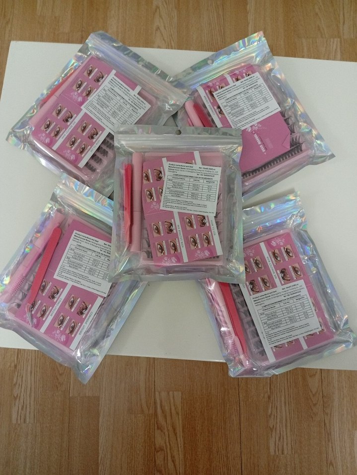 Pastel pembe renkte takma kirpikler ve uygulama araçları içeren set. Göz görünümünü yumuşak bir renk dokunuşuyla artırır. ️