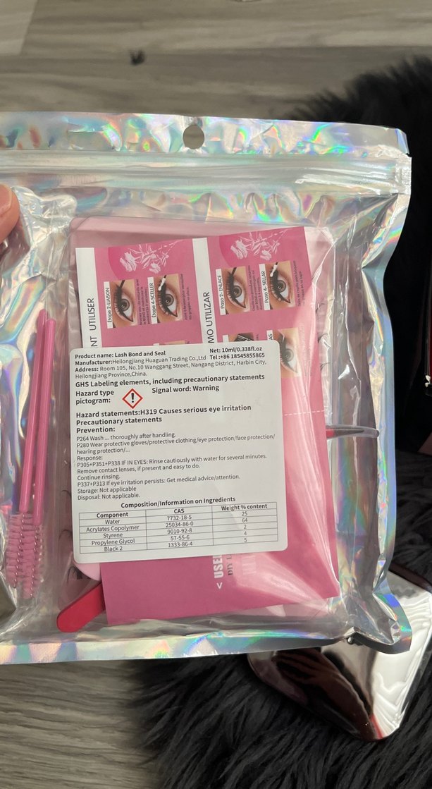 Pastel pembe renkte takma kirpikler, yapıştırıcı ve uygulama araçları içeren set. Yumuşak ve renkli görünüm sağlar.