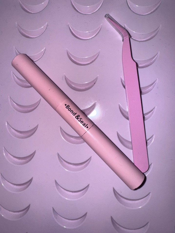 Pastel Pembe Takma Kirpik Yapıştırıcısı ve Cımbız