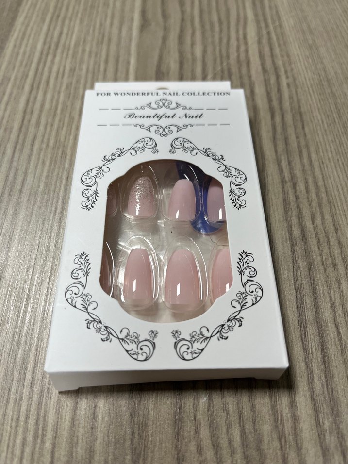 Pastel pembe renkli, hafif parlak yapay tırnak seti. Kolay uygulama için bir aparat içerir. 24 adet tırnak 24 adet yapıştırıcı bir adet Törpü