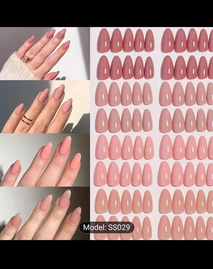 Model SS029 pastel pembe renkte, çeşitli boylarda mat görünümlü takma tırnak seti. Zarif bir görünüm sunar.