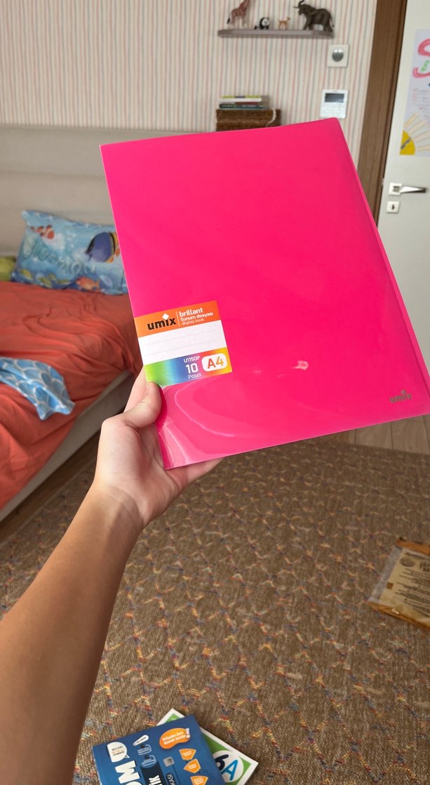 Pastel pembe renkte, 10 yapraklı A4 boyutunda Umix defter, düzgün kapaklı ve düzenli not almak için uygundur.
