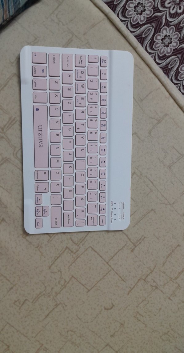 Pastel pembe Urzuva kablosuz klavye, yumuşak tuşlar ve net OCR yazısı ile kompakt tasarıma sahiptir.