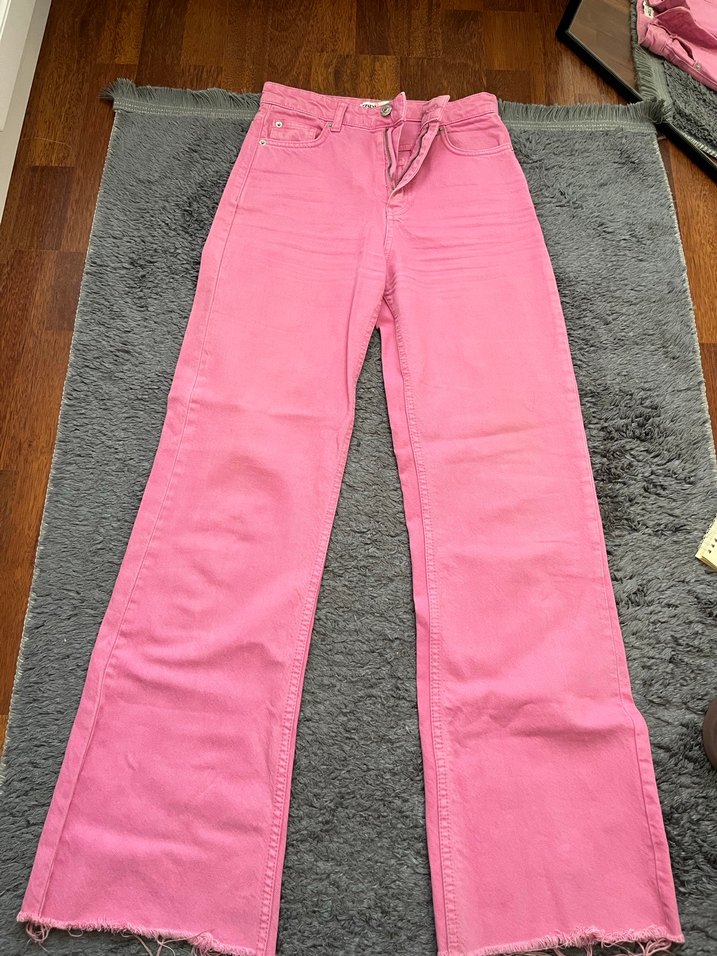 Pastel Pembe Uzun Kadın Kot Pantolon