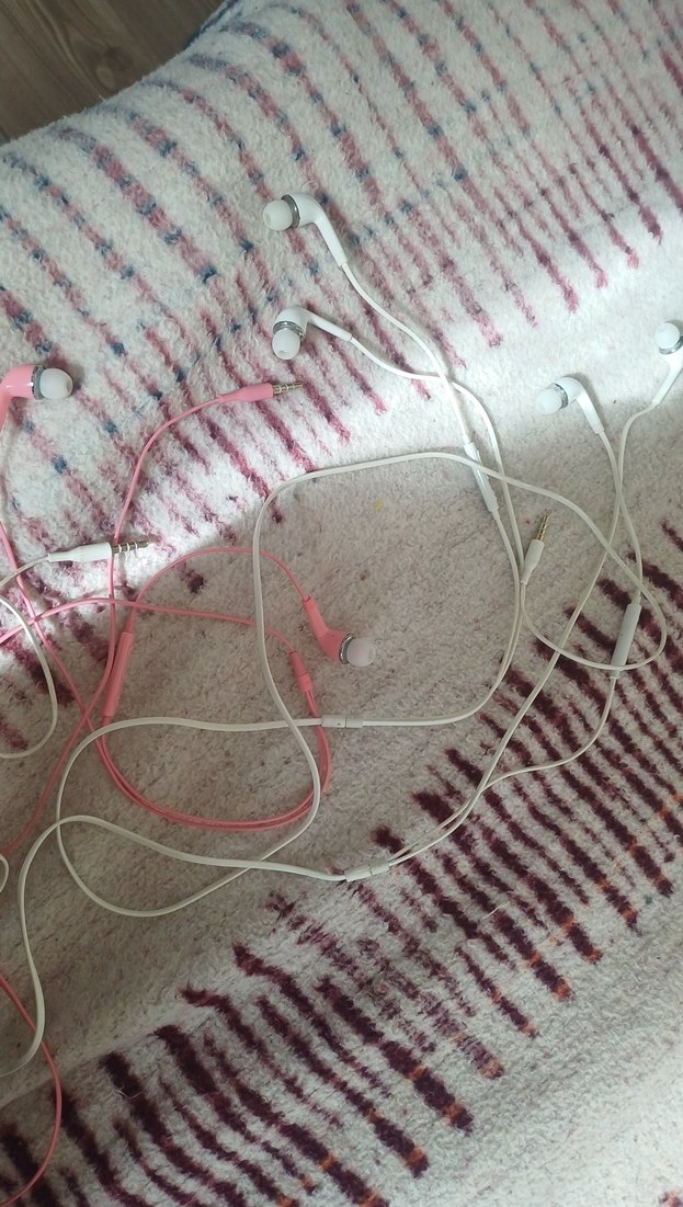 Pastel pembe renkli, kablolu kulak içi kulaklık, günlük kullanım için uygun. 3 tanesi 150 tek tek satmayacağım. rehberlik gezisi için 3üde birer kere kullanıldı, sorunsuzdur.