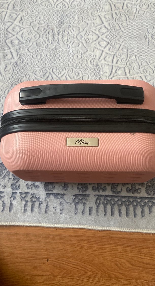 Pastel pembe renkte, vintage tarzda, fermuarlı ve dayanıklı plastikten yapılmış makyaj çantası. Basit Paris esintili deseniyle günlük kullanıma uygundur.