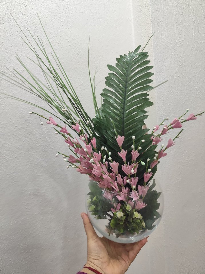 Pastel Pembe Yapay Çiçekli Dekoratif Vazo