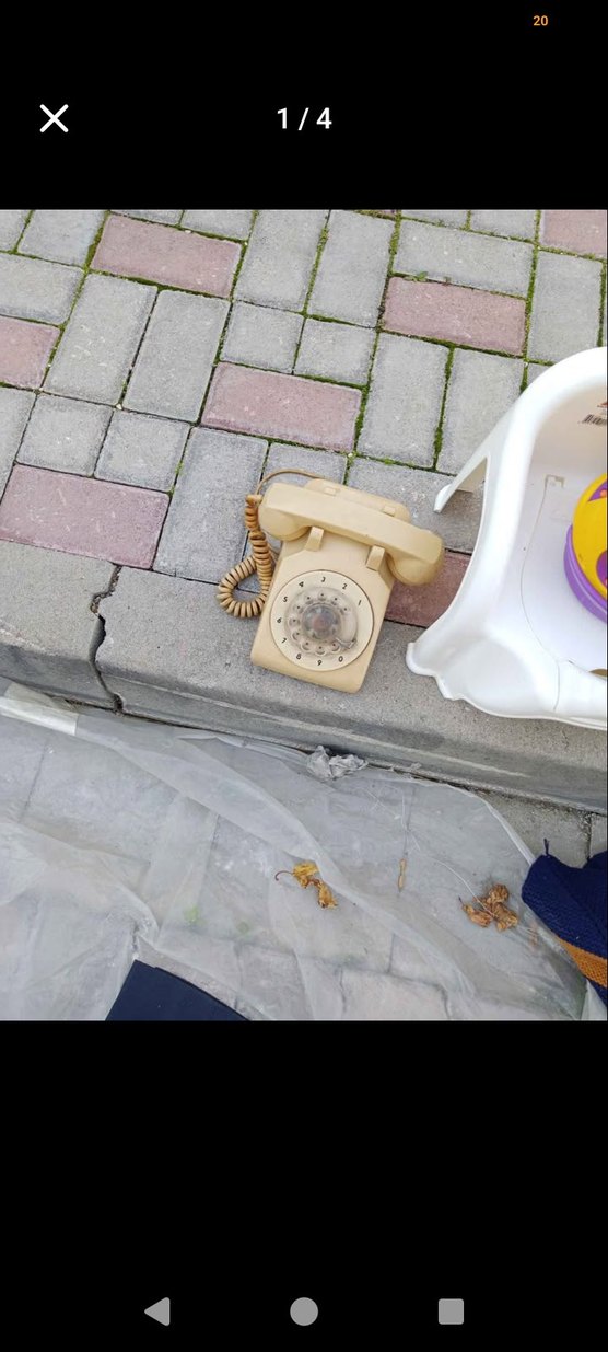 Pastel renkte, klasik döner kadran ve spiral kabloya sahip vintage telefon. Yumuşak pastel tonu nostaljik bir hava katıyor.