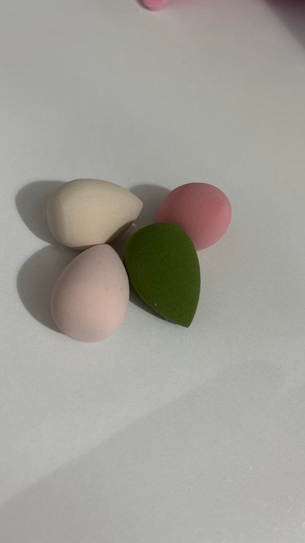 Farklı şekillerde ve yumuşak dokuda pastel renklerde makyaj süngerleri seti. 2’li set fiyatıdır