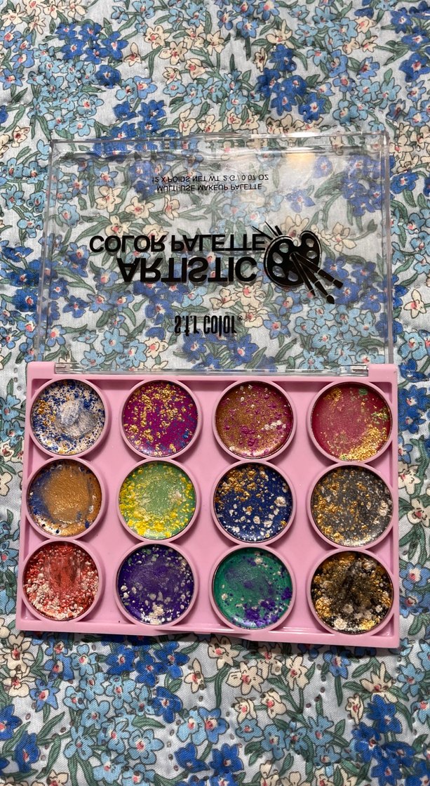 12 farklı pastel ton ve simli detaylar içeren göz farı paleti. Şeffaf kapaklı kompakt kutuda, renkler kolayca seçilebilir.