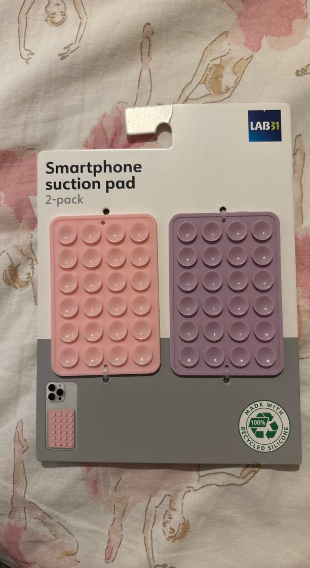 Pastel renklerde, düğme şeklinde tutucular içeren 2'li silikon telefon tutucu seti. Geri dönüştürülmüş malzemeden üretilmiştir. Teklifleri kabul ediyorum