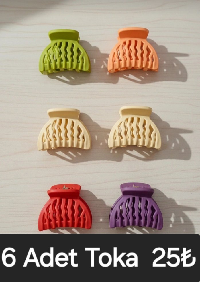 Pastel renklerde, plastikten yapılmış 6 adet ruffle detaylı saç tokası seti. Minimalist ve şık tasarımıyla öne çıkar.