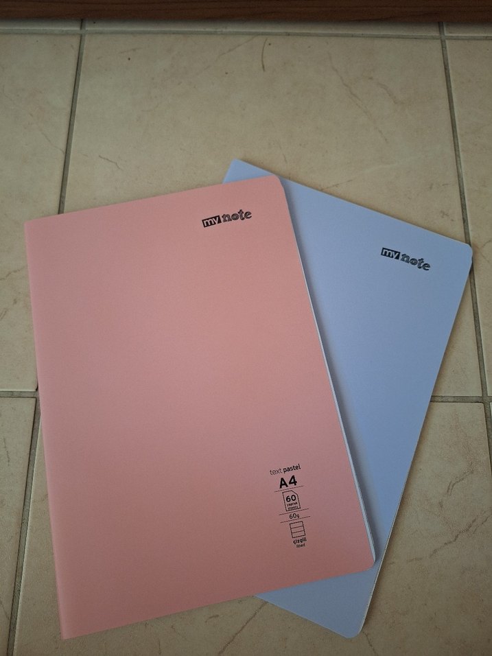 Pastel pembe ve lila renkte, 60 sayfalı A4 boyutunda iki adet defter seti. Kapaklarda 'my note' yazısı bulunur.