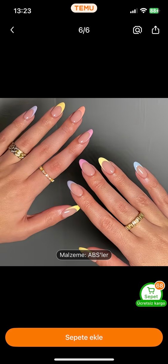Pastel renkli badem protez takma tırnak