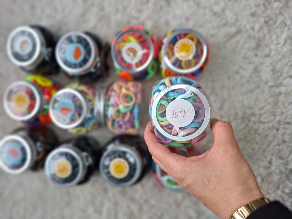 Elastik, pastel renkli tie-dye desenli saç bantları. Bohem ve retro tarzıyla renkli bir görünüm sağlar.