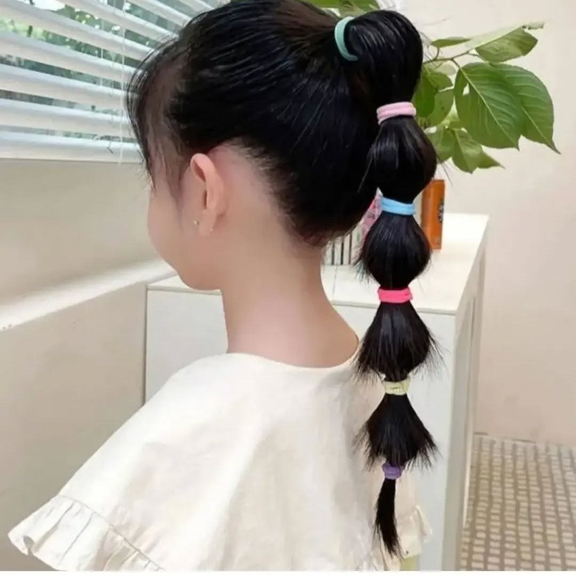 Pastel renklerde, bağlamalı lastikli, çocuk saç tokaları, retro ve bohem tarz sunar.