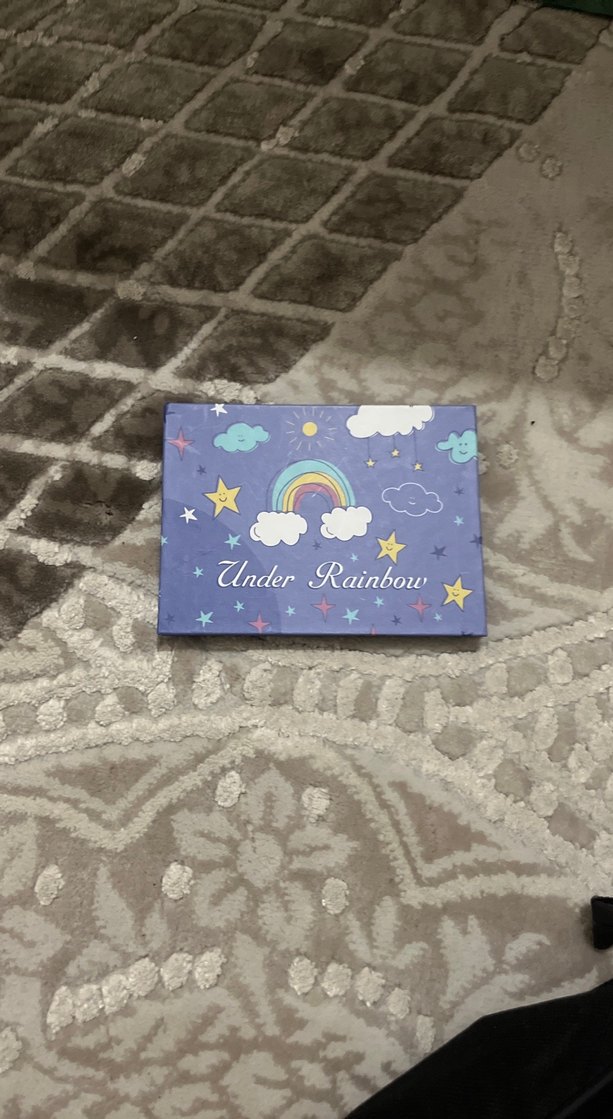 Pastel renklerde, yumuşak ve sıcak kumaştan yapılmış, gökkuşağı ve yıldız desenli çocuk battaniyesi. Üzerinde 'Under Rainbow' yazısı bulunur.