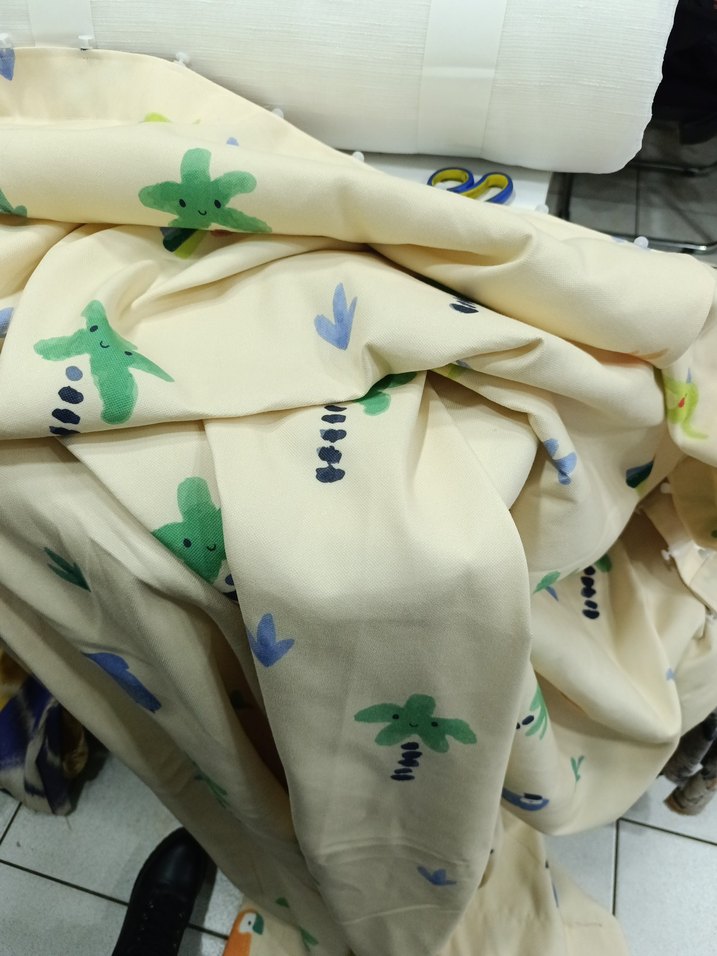 Pastel renklerde çok renkli baskılı desene sahip, yumuşak dokulu fonluk kumaş en 190 boy 243 güneşlik gibi düz dikilmis