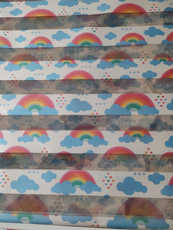 Pastel Renkli Baskılı Gökkuşağı Desenli Perde